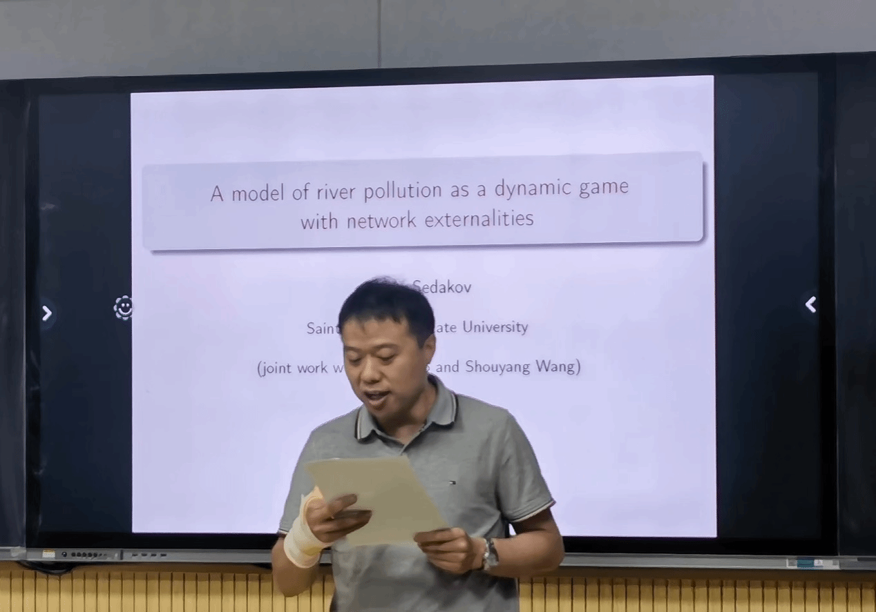 2023年5月15日-5月20日,受徐根玖教授邀请,圣彼得堡国立大学Artem Sedakov教授访问超级大乐透-官方网站(中国)官方系统 ,进行学术交流并商谈相关合作事宜。5月15日上午,Artem Sedakov教授于理学楼315会议室做了题为 “A model of river pollution as a dynamic game with network externalities”的体彩超级大乐透交流。报告由徐根玖教授主持,40余名师生参加了体彩超级大乐透交流交流。