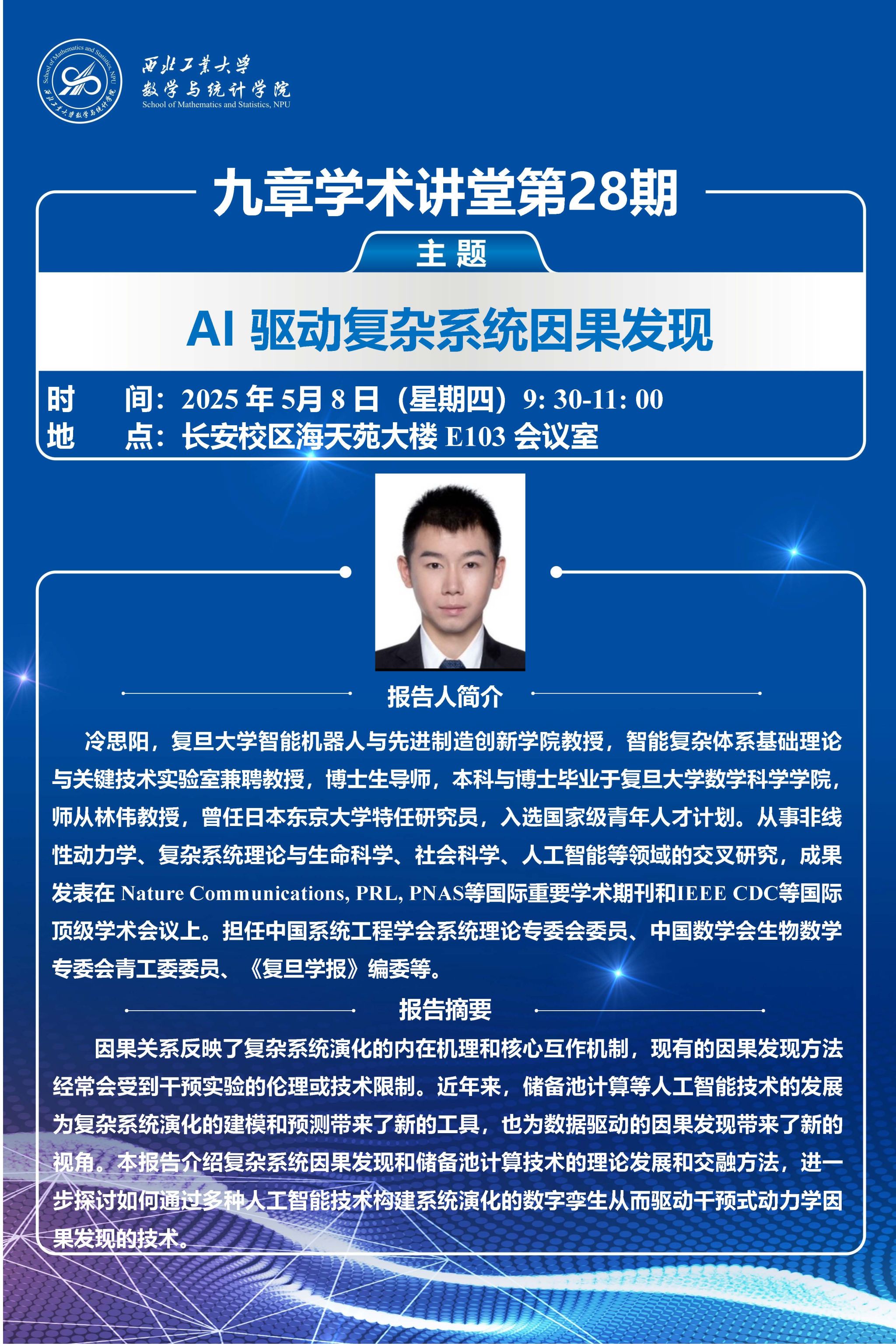 2025年5月8日,体彩超级大乐透 第28、29期“九章学术讲堂”成功举办。讲堂邀请复旦大学智能机器人与先进制造创新体彩超级大乐透 冷思阳教授和复旦大学智能复杂体系基础理论与关键技术实验室史际帆副研究员,分别作题为“迁移学习下单细胞空间位置推断”和“AI驱动复杂系统因果发现”的报告,并与体彩超级大乐透 教师围绕科研合作进行座谈。体彩超级大乐透 20余位师生参会,报告由裴斌教授主持。