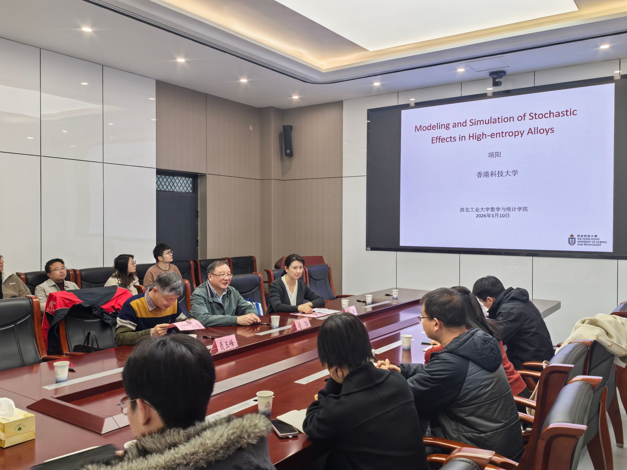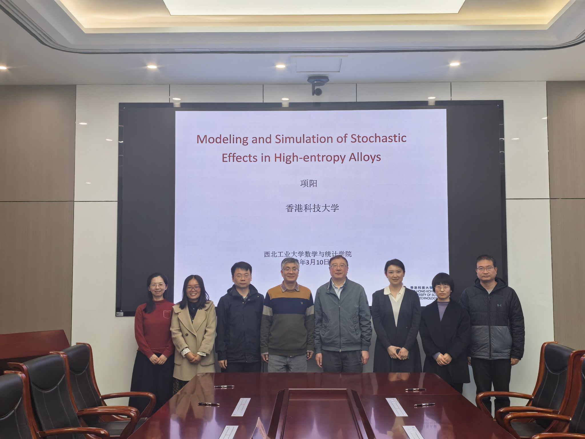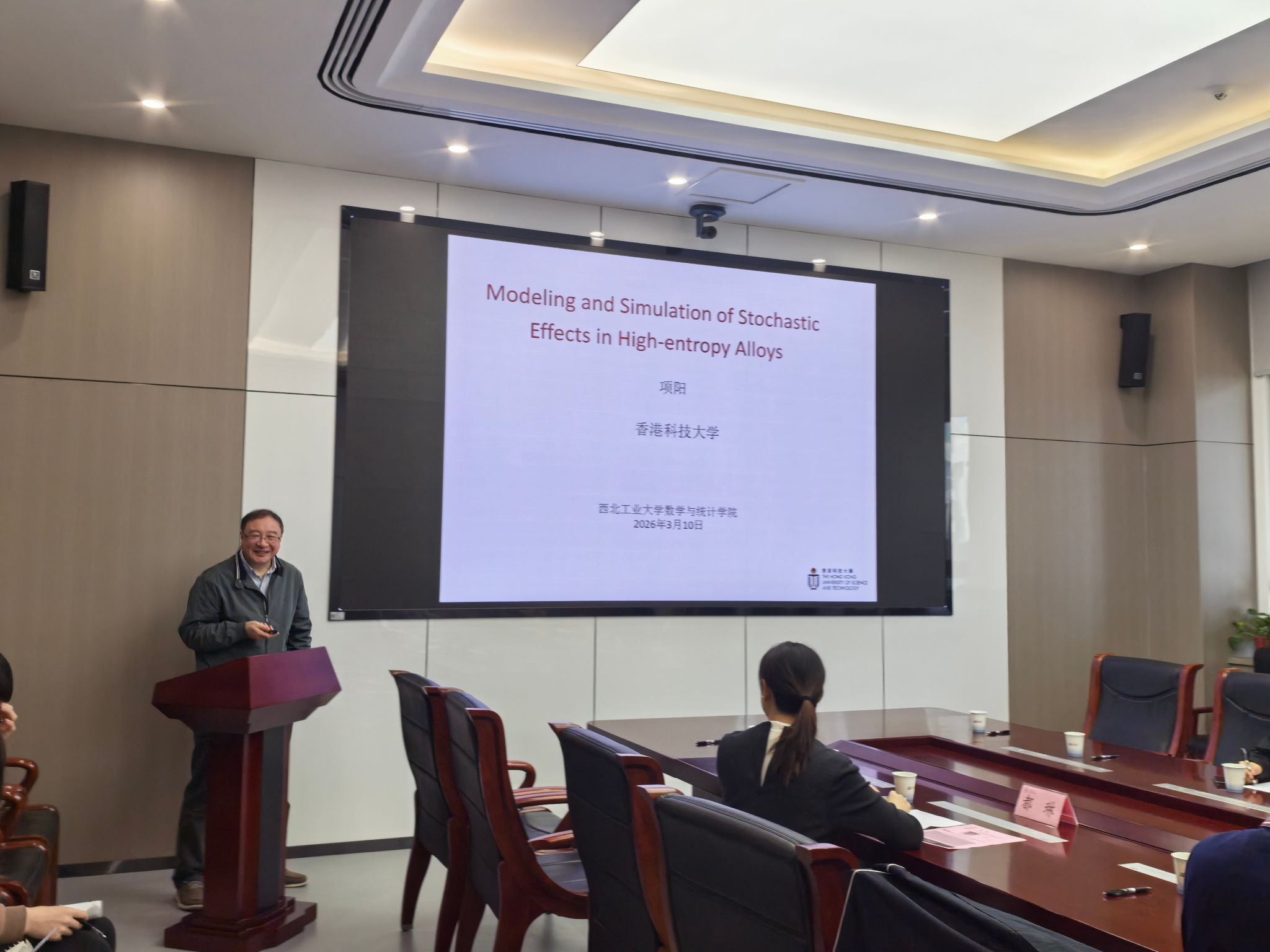 3月11日上午,“翱翔灵犀学术殿堂”第932期在长安校区海天苑大楼E103会议室举行。香港科技大学数学系项阳教授应体彩超级大乐透 邀请作题为《Modeling Effects of Randomness in High Entropy Alloys》的学术报告。体彩超级大乐透 院长聂玉峰教授、副院长都琳教授等20余位师生参会,报告由聂玉峰主持。