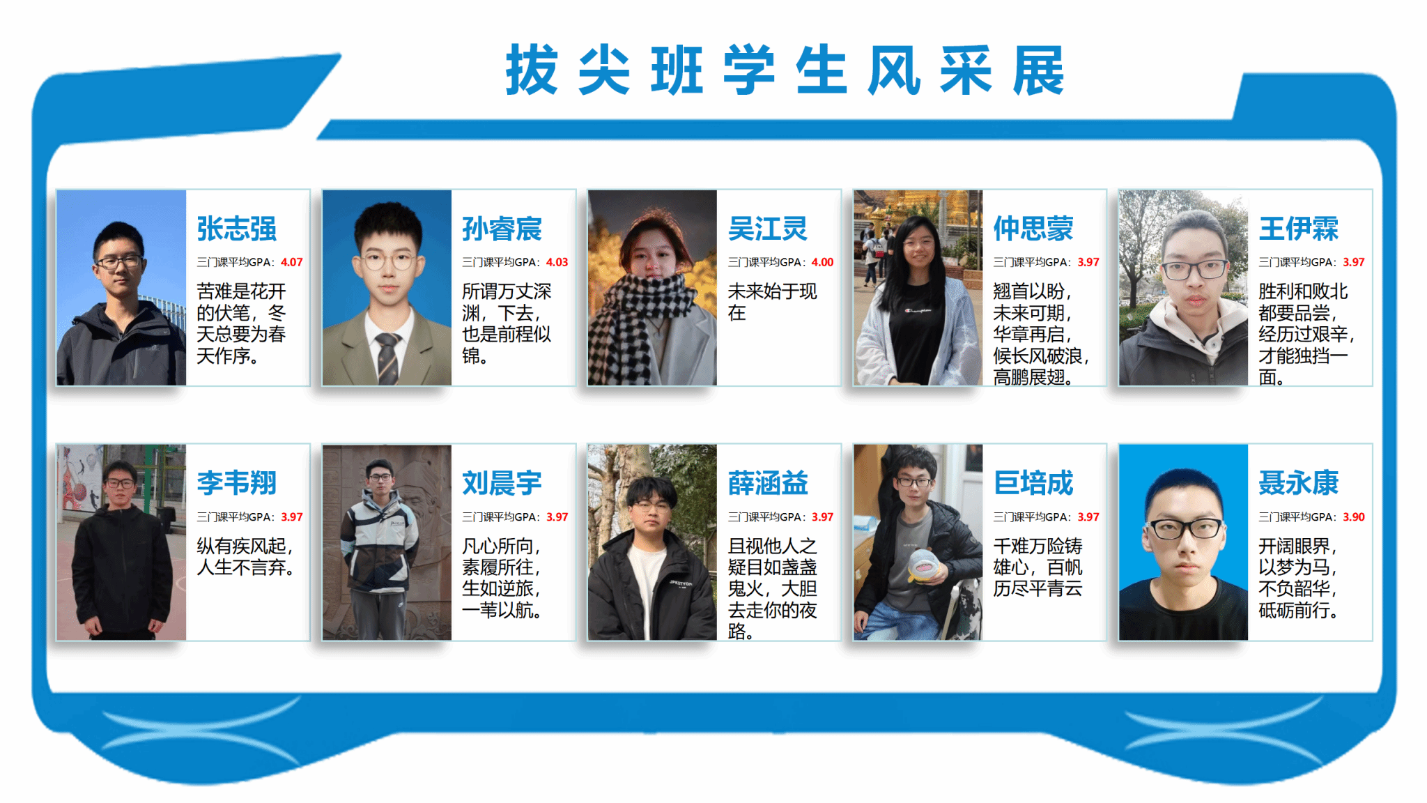 院长助理刘晓刚、年级辅导员范艾利分别就拔尖班选拔过程、培养模式、个性化支持政策及管理方案做了进一步说明。拔尖班学业管理班主任赵俊锋就学生学业规划、未来发展方向等提出具体要求。