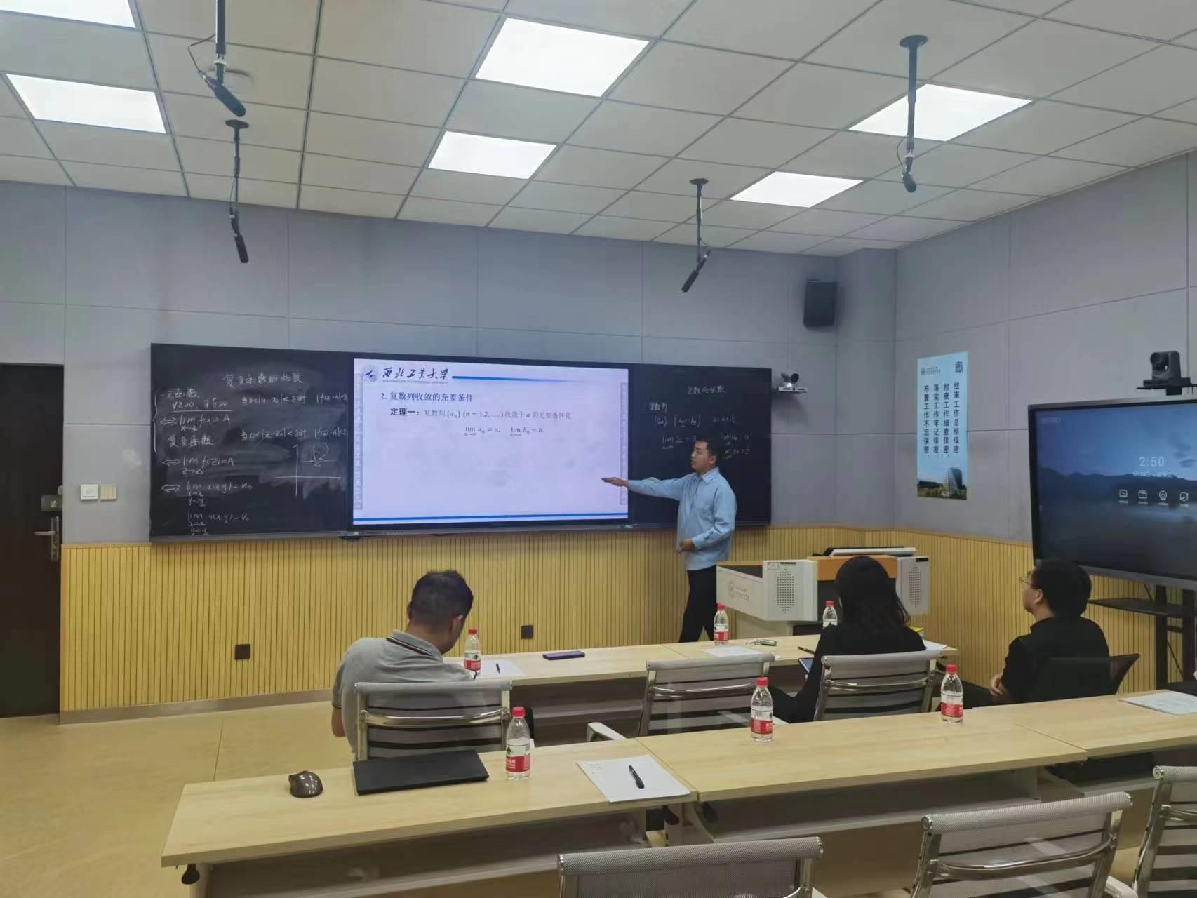 试讲过程中,李文忠老师精心准备了《复变函数与积分变换》的三个知识点,包括“复变函数的极限”“复变函数的导数”“复变项级数”,每个知识点试讲15分钟。他的试讲板书条理清晰,内容丰富,既有知识点设计及拓展,又有课堂小结,并巧妙地将课程思政元素融入其中,充分展示了体彩超级大乐透 青年教师的课堂风采。四位专家评为也分别从课堂准备、教学内容、教学方法、语言表达、课程思政等方面做了详细指导。