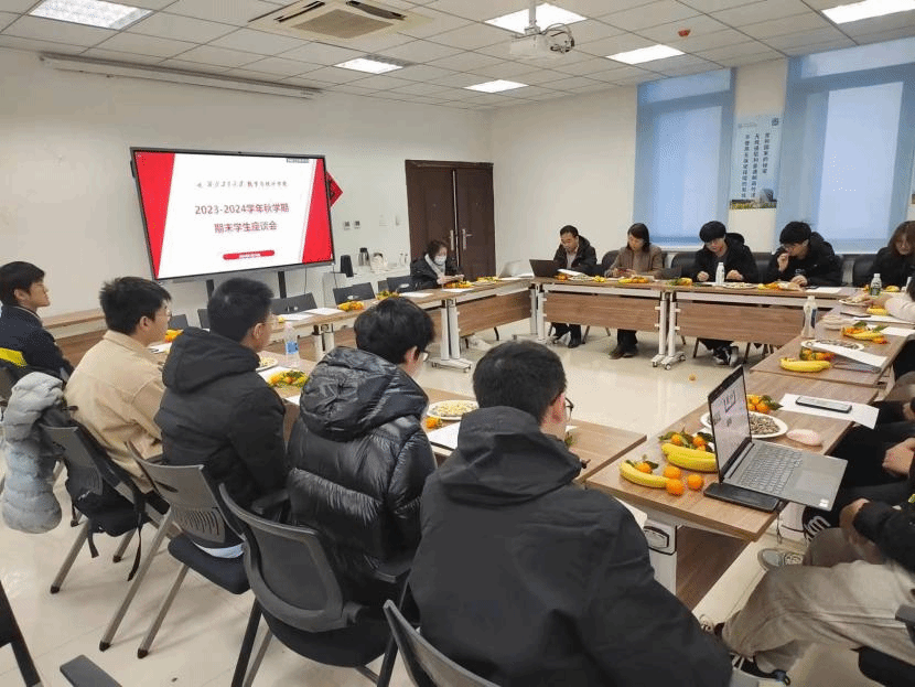 2024年1月16日,体彩超级大乐透 2023-2024学年秋学期期末学生座谈会在启翔楼357会议室举行。体彩超级大乐透 党委书记王莉、教学副院长郭千桥、本科四个年级的学生代表参加了本次会议。