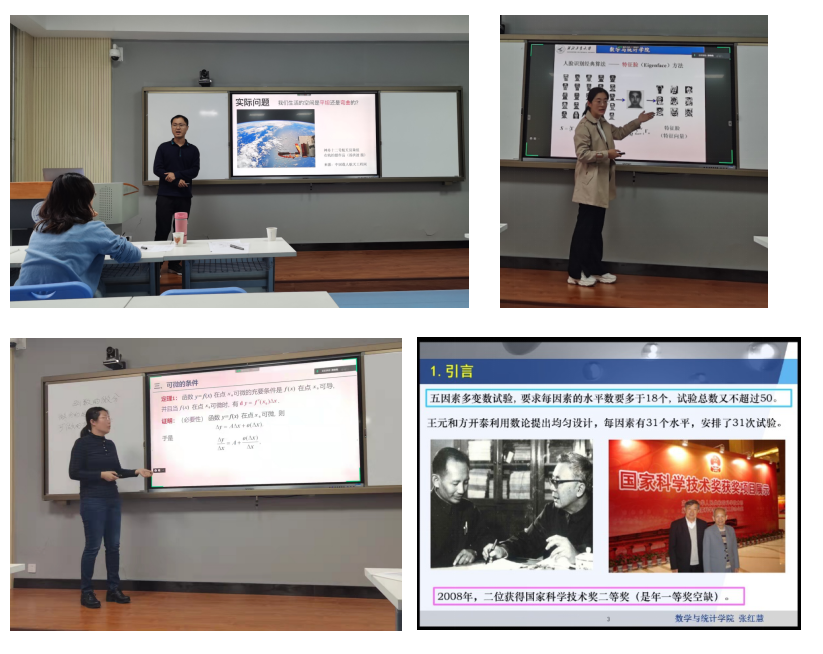 体彩超级大乐透 教学委员会主任彭国华、数学与应用数学专业负责人陆由、院课程思政教学研究示范中心副主任潘璐璐和唐亚宁老师担任评委,李静、陈航、李巍、张红慧等四位青年教师参赛并进行教学片段展示,会议采用线上线下方式同步进行,副院长都琳、院长助理刘晓刚分别进行主持。
