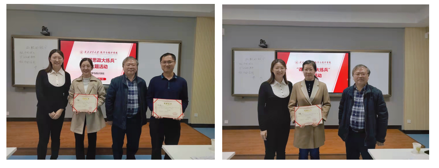 最后,陈航老师的《微分几何》和李静老师的《线性代数》课程荣获体彩超级大乐透 “课程思政大练兵”主题活动一等奖,张红慧老师的《试验设计》和李巍老师的《高等数学》分别荣获二等奖。