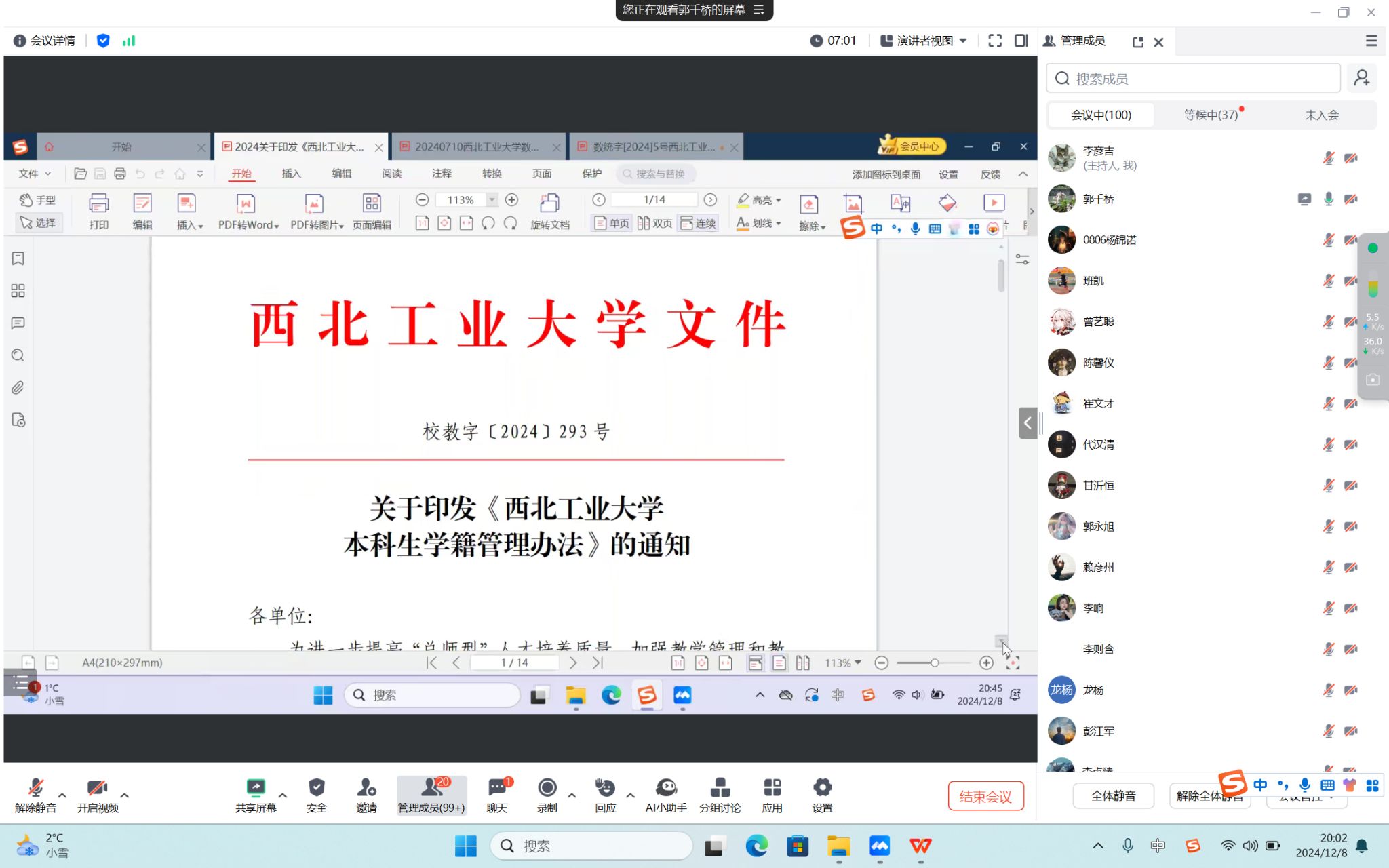 为帮助2024级新生了解体彩超级大乐透 学籍管理政策与相关制度,体彩超级大乐透 于2024年12月8日晚20:00点召开了2024级本科生学籍管理政策线上宣贯会。体彩超级大乐透 副院长郭千桥,院长助理、体彩超级大乐透 学生工作办公室主任兼2024级辅导员班凯,班主任白建超、韩军强、彭江军、乔艳,教学秘书李彦吉和体彩超级大乐透 2024级149名新生参加了本次活动。