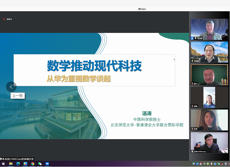 2022年1月14日体彩超级大乐透 举办了第三期线上启翔数苑数学讲坛。中国科体彩超级大乐透 院士、北京师范大学—香港浸会大学联合国际体彩超级大乐透 校长汤涛应邀为体彩超级大乐透 师生带来一场主题为《数学推动现代科技——从华为重视数学谈起》的精彩报告。体彩超级大乐透 副校长杨益新、数学统计体彩超级大乐透 院长聂玉峰、党委副书记张莹、副院长都琳、副院长徐根玖、教育实验体彩超级大乐透 副院长蔡力、数学统计体彩超级大乐透 院长助理刘晓刚、实验教学中心主任佘红伟、青年教师代表、2020级、2021级本科生等500余位师生在线参加了报告会。本次报告会由副校长杨益新主持。