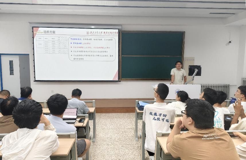 宣讲环节,夏健康、赵俊锋、王亮三位老师依次登台,分别从专业背景、培养目标、师资力量、课程体系及未来发展前景等方面,对数学与应用数学、信息与计算科学、统计学三个专业进行了详细深入的介绍。老师们详实的讲解为同学们廓清了专业方向,明晰了未来发展路径。最后,李彦吉老师结合2021级毕业审核经验对同学们选课过程中的常见问题和常犯错误进行了重点强调,提醒同学们严格按照培养方案、体彩超级大乐透 研究生推免文件等相关制度文件要求进行选课。