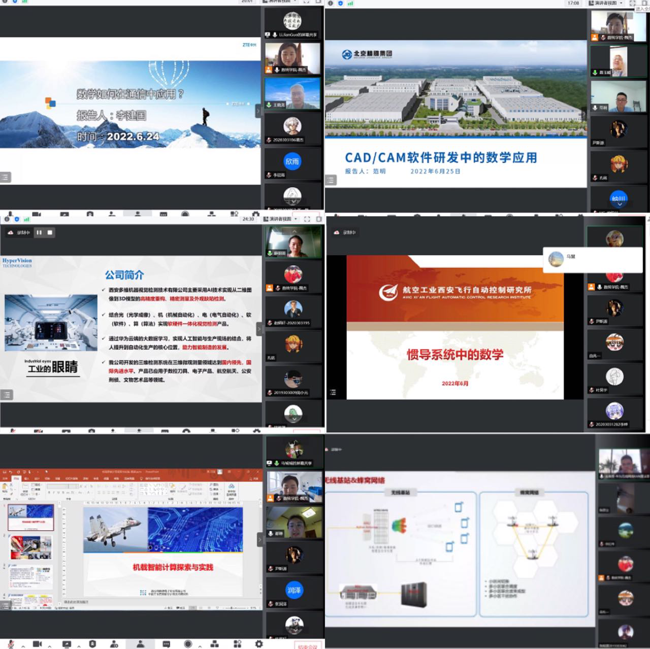 为加强数学专业认识和教育,了解数学在企业中的实际应用,近距离接触知名企事业单位,增强学生的学科自信、劳动观点、工程观点和建设中国特色社会主义事业的责任心和使命感,2022年6月24日-28日体彩超级大乐透 顺利开展了“数”实了不起—数学在企业中的应用线上“云实习”系列讲座。邀请了中兴通讯无线研究院、北京精雕集团西安研发中心、西安多维机器视觉检测技术有限公司、航空工业自动控制研究所、西安翔腾微电子科技有限公司、华为技术有限公司的专家和老师为本科生开展专题讲座。数学统计体彩超级大乐透 院长聂玉峰、党委书记王莉、副院长都琳、数学实验教学中心主任佘红伟、计算科学系主任王晓龙、应用概率统计系主任王亮、青年教师代表魏杰、朱项项、2019级、2020级本科生等180余位师生在线参加。