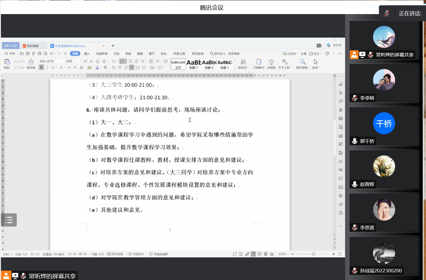 为贯彻落实一流本科人才培养行动计划,提高立德树人质量,2023年1月6日,体彩超级大乐透 召开期末本科生线上座谈会。体彩超级大乐透 教学副院长郭千桥,院长助理刘晓刚,教学秘书常昕烨、李思遥、李卓榕,及本科四个年级的学生代表参加了本次会议。