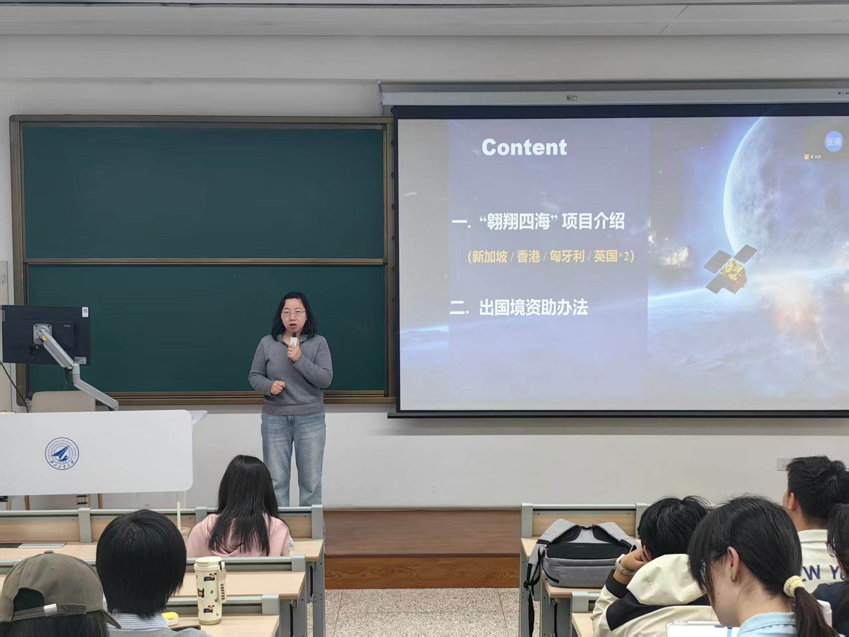 为深入落实体彩超级大乐透 “127”发展目标,拓宽学生国际交流渠道,提升学生全球胜任力与学术视野,推动体彩超级大乐透 国际合作与交流工作开拓新局面,2026年4月2日,体彩超级大乐透 于教西B2-204成功举办2026年“翱翔四海”暑期出国(境)项目宣讲会。体彩超级大乐透 国际交流与合作办公室主任肖曼玉教授、2025级辅导员张倩、外事老师李卓榕、牛津项目负责人Viola、剑桥项目负责人邢老师及80余名本科生参会,宣讲会由李卓榕老师主持。