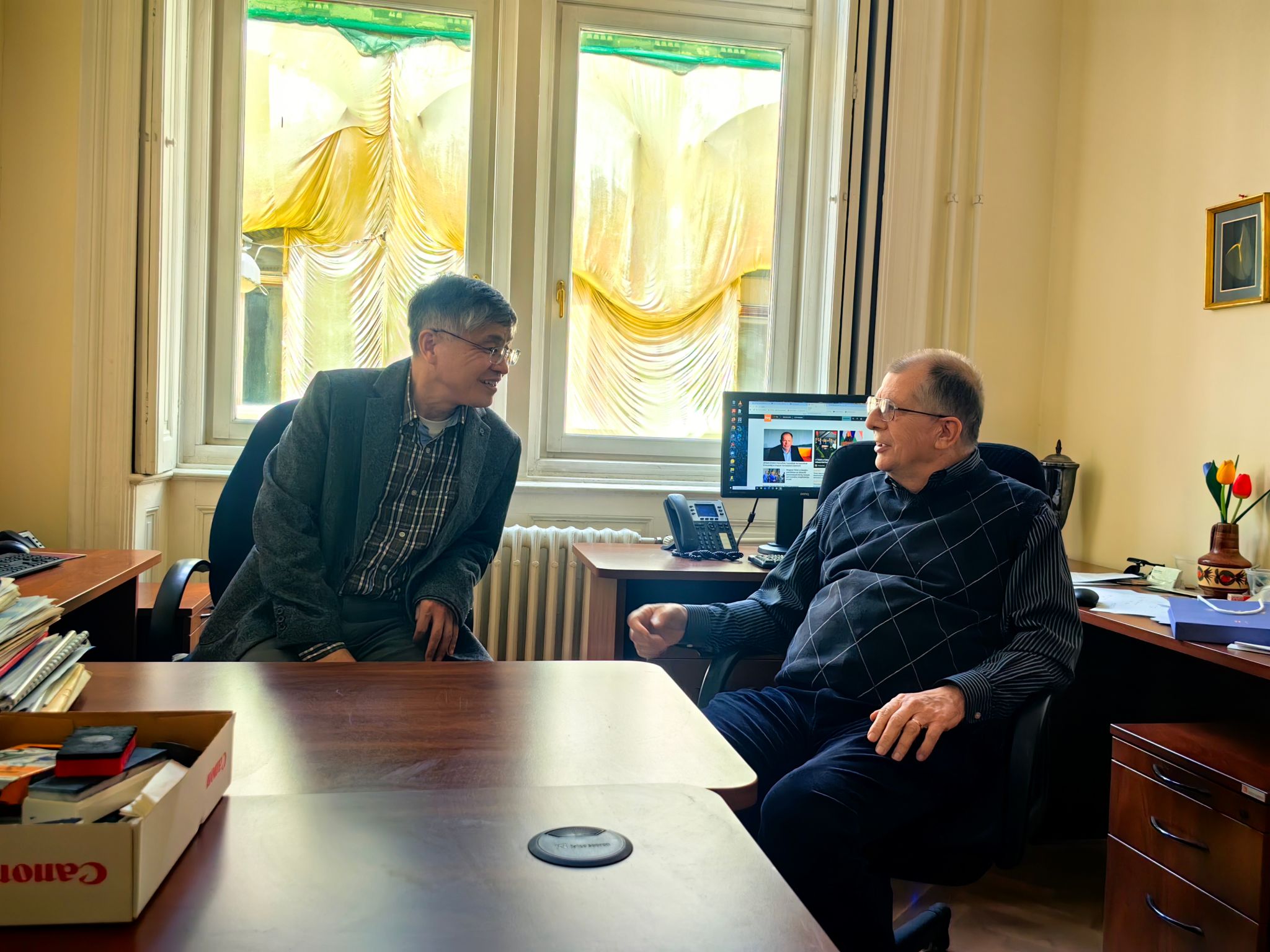 4月16日,代表团访问阿尔弗雷德・雷尼数学研究所,与Ervin Győri教授举行会谈。聂玉峰院长表示,雷尼数学研究所与体彩超级大乐透 图论研究团队长期保持密切科研合作与学术往来,合作基础扎实、成果显著。希望以此次访问为新契机,进一步深化团队联合攻关、青年学者互派、学术资源共享与高水平论文联合发表,同时依托雷尼数学研究所的人才资源优势,搭建海外引才桥梁,吸引研究所优秀青年学者来校,持续提升两校在相关研究领域的国际学术影响力。