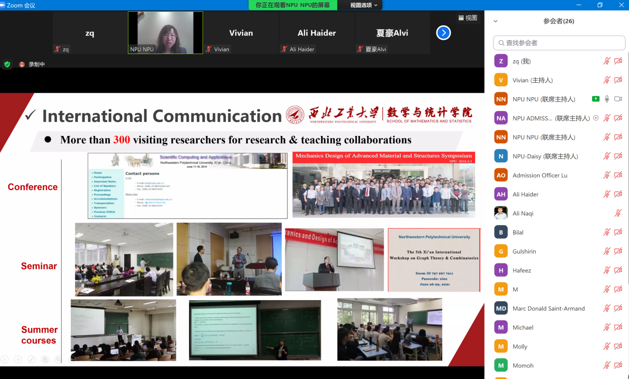 为切实提升体彩超级大乐透 留学生招生质量,增强体彩超级大乐透 国际影响力,达到更好的留学生招生效果,2022年1月7日,体彩超级大乐透 国际交流与合作办公室主任肖曼玉副教授参与国际教育体彩超级大乐透 组织的留学生招生宣传直播活动,会议由国教院张正瑶老师主持,来自世界各地近30名留学生参加。