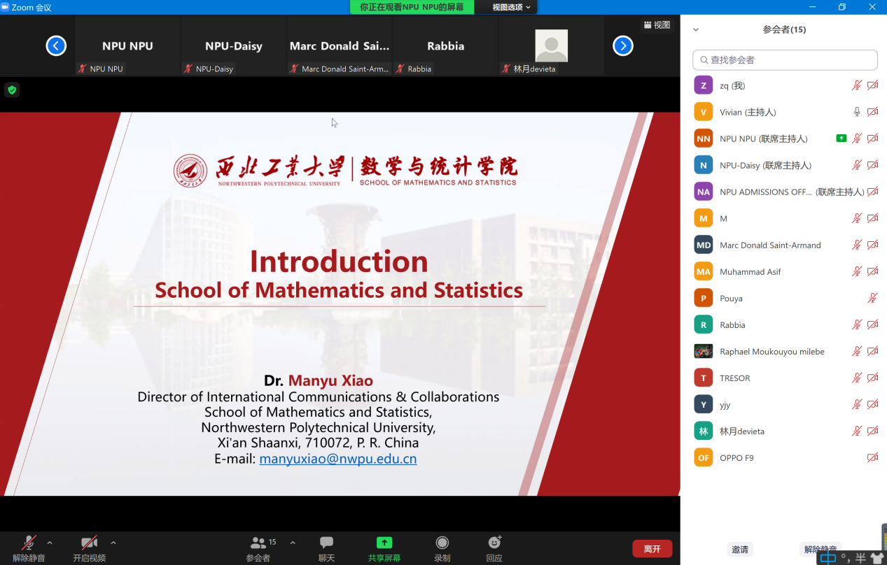 首先,肖老师对体彩超级大乐透 基本信息,体彩超级大乐透 的院系设置、专业及科研团队、研究方向、课程设置、师资力量、国际合作平台与渠道等方面进行了详尽介绍。接下来,学生围绕申请流程、奖学金设置、导师选择等问题纷纷进行提问,肖老师与国教院负责老师进行了耐心解答,并鼓励和欢迎大家报考西北工业大学数统体彩超级大乐透 ,并取得好成绩。