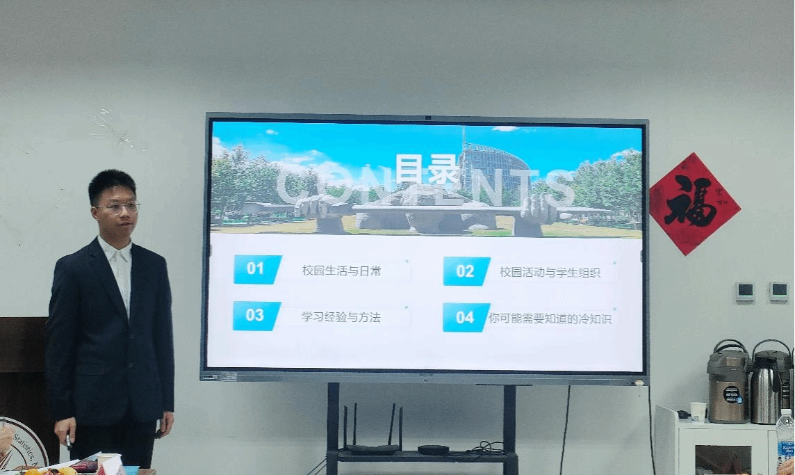 重庆籍学长代表张颢瀚同学结合个人发展经历向新生们分享了在西工大日常学习、学生工作与社会实践等方面的成长经验;他以“过来人”的身份强调了自律学习的重要性,告诫大家在大学也不要放松。