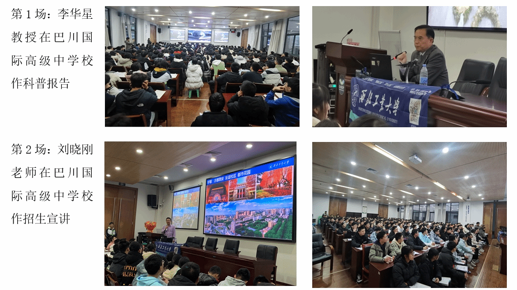 为构建大学与中学之间的教育合作,打造教育合作共同体,充分发挥优质生源基地作用,持续提升体彩超级大乐透 声誉,2024年2月29日至3月5日,由体彩超级大乐透 党委书记王莉、院长助理刘晓刚、重庆招生组组长林伟及西北工业大学伦敦玛丽女王大学工程体彩超级大乐透 王永欣教授、航空体彩超级大乐透 李华星教授、航空体彩超级大乐透 杨华保教授等组成的联合招生宣传组先后赴重庆市巴川国际高级中体彩超级大乐透 、铜梁中体彩超级大乐透 、凤鸣山中学、首佳教育、蕴华教育、重庆外国语体彩超级大乐透 等6所中学与教育机构举行招生宣传活动计11场,包括4场科普报告、6场招生宣讲、1场“优质生源基地”授牌活动。