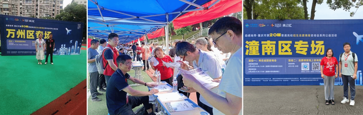 为了更好地服务重庆市家长和考生,招生组还在重庆大酒店设立集中咨询点,老师们通过热情、高效、细致的讲解和咨询服务,为考生及家长们填报志愿提供合理的建议和意见。招生咨询热线不断线。面向重庆市中学公布18部招生咨询热线,第一时间解答考生及家长的疑问。同时设立微信群和QQ群,热心为考生答疑解惑,全方位做好招生咨询工作。