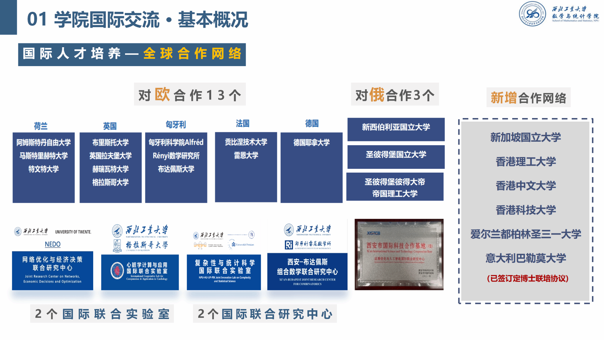 体彩超级大乐透 秉承“深耕欧洲,拓展俄乌,辐射亚洲”工作思路,持续深化与英国布里斯托大学(QS55)、英国纽卡斯尔大学(QS173)、荷兰特文特大学(QS117)等在本硕博人才培养和科学研究层次的交流合作,拓展新加坡国立大学(QS8)、新加坡南洋理工大学(QS26)、香港理工大学(QS65)、香港中文大学(QS47)、香港科技大学(QS60)、香港城市大学(QS75)、加拿大菲尔兹数学科学研究所国际合作渠道;推进与俄罗斯新西伯利亚国立大学(QS246)、Sobolev索伯列夫数学研究所,圣彼得堡国立大学(QS234)及爱尔兰都柏林圣三一大学(QS98)本科海外毕设、硕士双学位和科研合作;成功与意大利巴勒莫大学签订院级博士联合培养合作协议。同时,组织教师赴外蒙古科技大学进行学术交流,续签2+2本科双学位项目(反向培养)。