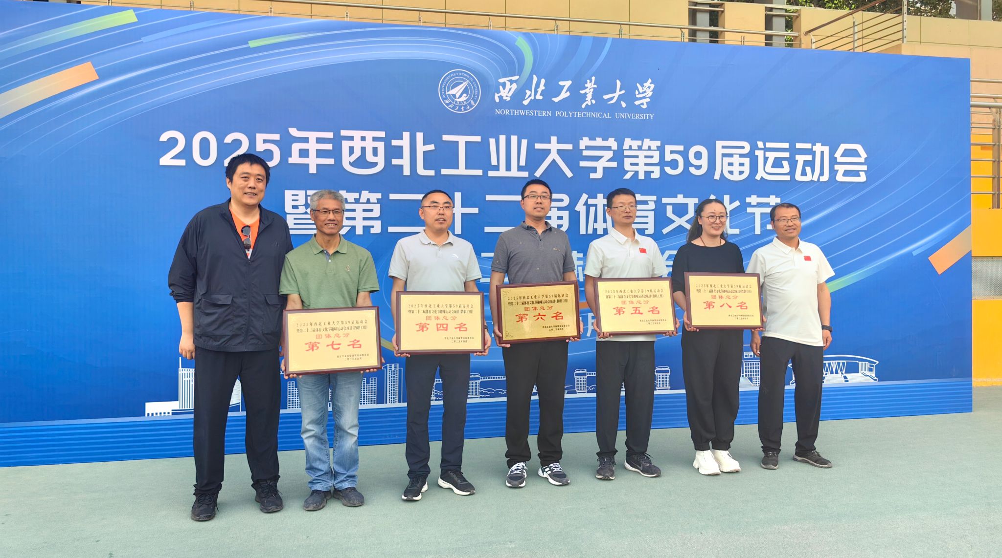 4月25日,2025年西北工业大学教职工趣味运动会在友谊校区田径场圆满举行。体彩超级大乐透 在工会前期的精心组织下,15名体彩超级大乐透 教职工在赛场上精诚合作、奋勇争先,在三个项目分获小组第一,并最终获得单项第二名,团体总分第六名,刷新体彩超级大乐透 历届参赛最好成绩,充分展现了体彩超级大乐透 教职工团结一心,积极向上的精神风貌。