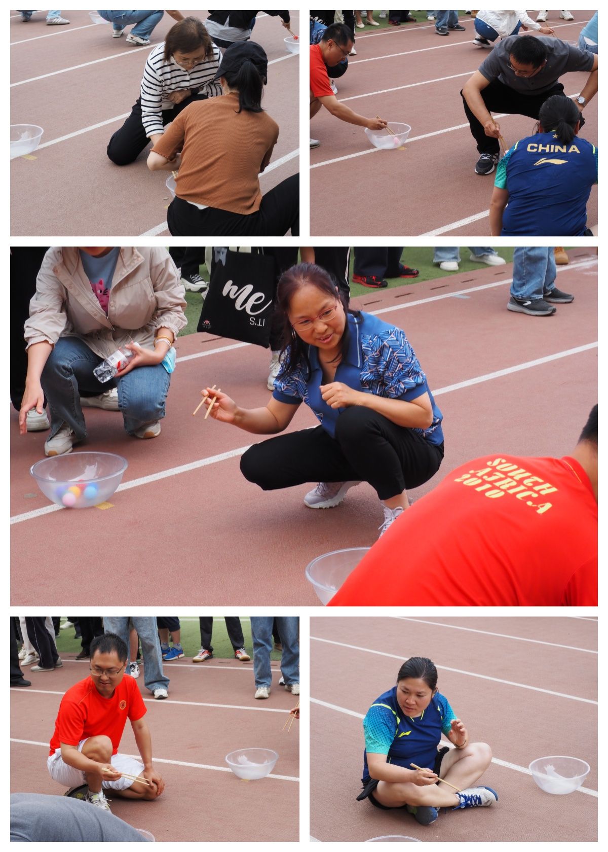 接下来进行的接力夹乒乓球项目同样充满挑战,需要参赛人员具备良好的手部控制能力和专注力。比赛过程中,体彩超级大乐透 老师们手持筷子,全神贯注,小心翼翼地夹起乒乓球,迅速而稳健地向后传递,力求在最短时间内完成接力。在八名老师的通力合作下,最终获得小组第一、总用时第二名。老师们在比赛中展现出的专注和细致,也赢得了现场观众的阵阵掌声。