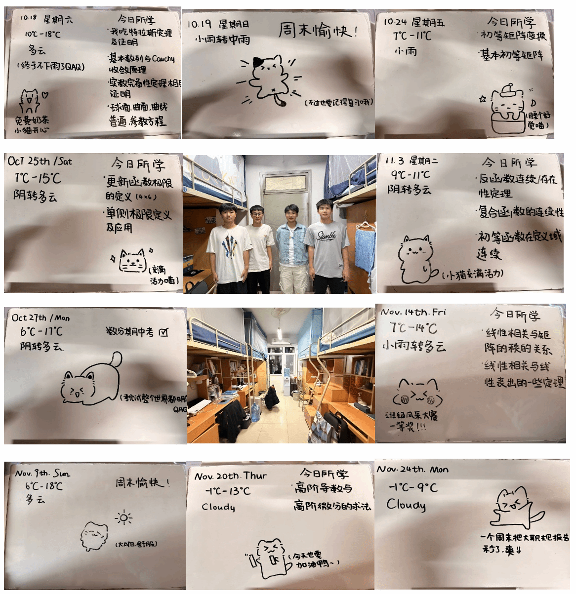 宿舍简介:我们以“逻辑化平衡”为核心理念,借日程表统筹学业生活,与舍友同频奋进;以平等沟通消弭分歧,共守舍规以保作息与安全。学业上主动问辨,相处间严谨探讨与日常谈笑兼具,尽显数学学子自律向上、温情共融的风貌。