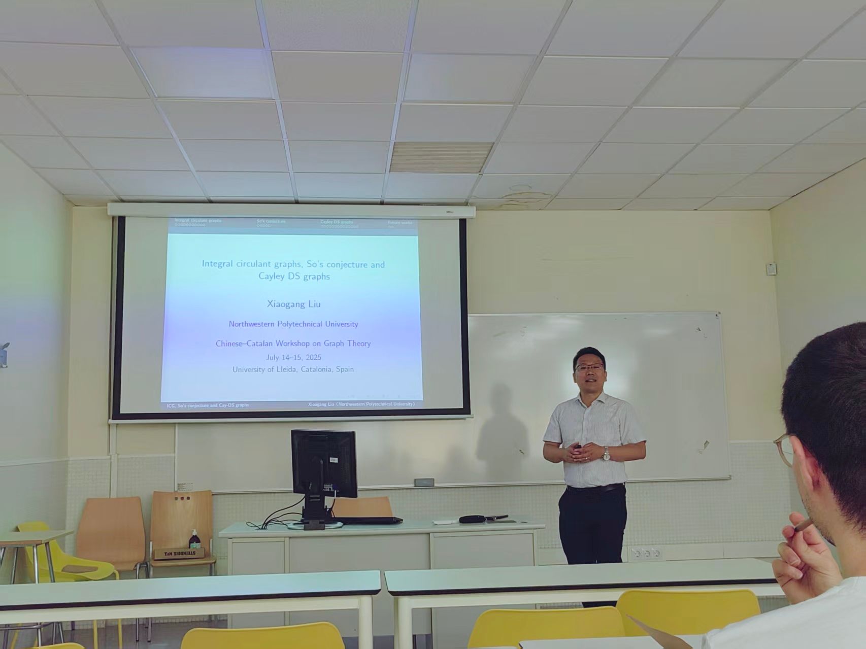 7 月 14 日至 15 日,由张胜贵教授与 Cristina Dalfó 教授共同发起的 “图论及其应用双边研讨会” 在莱里达大学数学系体彩超级大乐透交流厅成功召开。研讨会紧扣学科前沿,安排 11 场高水平体彩超级大乐透交流——其中中方6场,西方5场。与会专家围绕图中圈、匹配与流、谱图兰问题、Moore图和图谱应用等主题展开分享。现场讨论热烈,双方就多个关键问题交换思路,为未来合作研究明确了突破口。