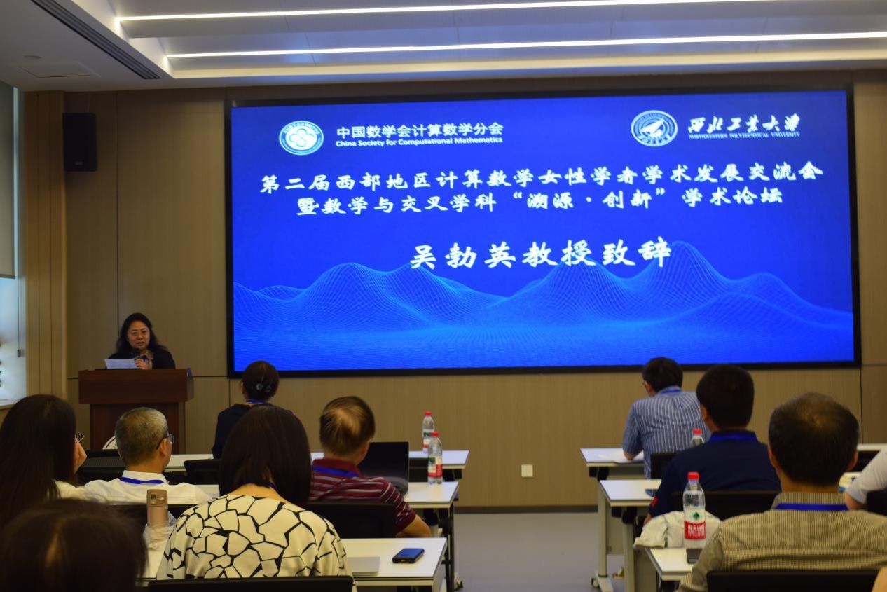 会议于6月28日上午在西北工业大学长安校区海天苑大楼E108会议室举行,学会秘书长明平兵研究员主持了开幕式。江松院士通过线上致辞强调:“计算数学作为连接基础研究与工程应用的关键纽带,在空天科技及人工智能等领域正发挥不可替代的作用。女性学者以严谨细腻的科研特质,在复杂算法设计与多尺度建模中成果显著,是西部科技发展的重要力量”。吴勃英教授在致辞中特别指出:“从国家政策支持到学会平台搭建,女性科研工作者的发展生态持续优化。本次会议将‘数学创新、西部发展、女性力量’三大主题深度融合,必将为西部计算数学注入新的活力”。