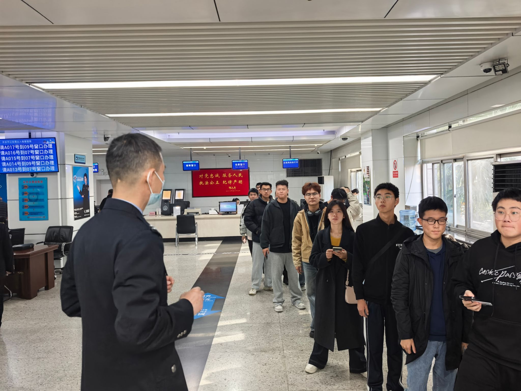 10月30日下午,第一批18名学生准时在指定地点集合,乘坐校车前往高新分局。在派出所工作人员的引导下,同学们有序完成人像采集、申请表打印、材料递交等流程,全程高效快捷,安全返校。11月15日,体彩超级大乐透 推进第二批服务,组织 27 名学生前往西安市公安局办理护照。在工作人员和志愿者的指引下,学生们顺利完成信息采集核验、缴费登记等全部手续,整场活动规范有序。