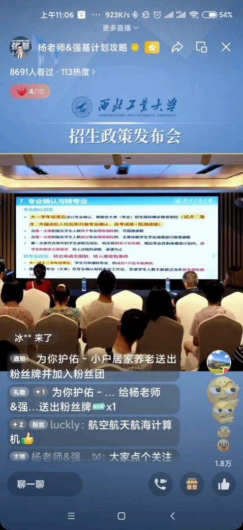 交流环节中,考生和家长积极提问,招生团队耐心解答,现场气氛活跃,考生和家长对西北工业大学的招生政策和专业设置表现出浓厚兴趣。